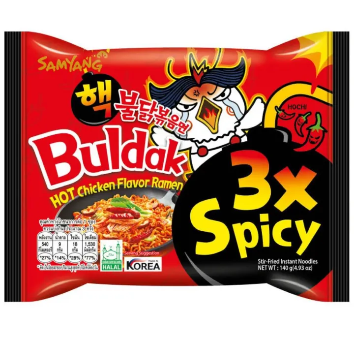 The Samyang 3X Spicy Buldak Ramen 140g is the hottest Korean ramen in the Buldak line. This halal-certified version delivers explosive heat along with the signature Korean hot chicken flavour Samyang is known for.