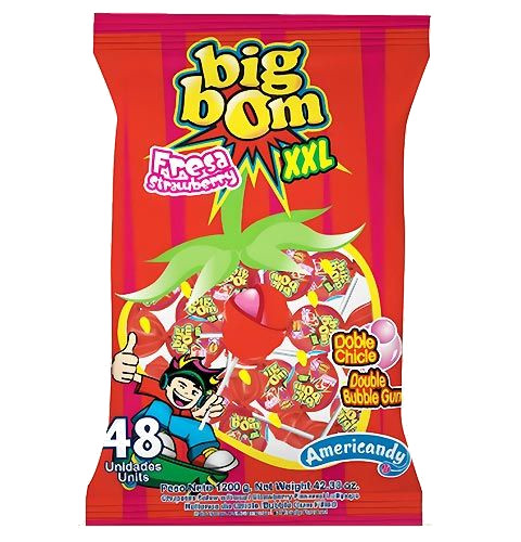 Savor the juicy sweetness of strawberries with BIG BOM XXL Fresa Strawberry Lollipops 48pcs Pack. Each oversized lollipop is packed with fruity flavor, making it a favorite for kids and adults alike. Great for parties, sharing, or simply treating yourself.